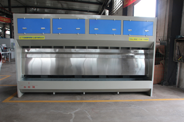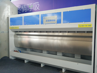 無(wú)泵水簾柜借助風(fēng)力作用提水形成水簾,無(wú)需水泵提水。避免了因水泵和管道堵塞、損壞引起的故障,大大提高了固體漆霧顆粒的凈除效果。其漆霧處理方法科學(xué)有效,是一種技術(shù)較為先進(jìn)的漆霧處理設(shè)備。